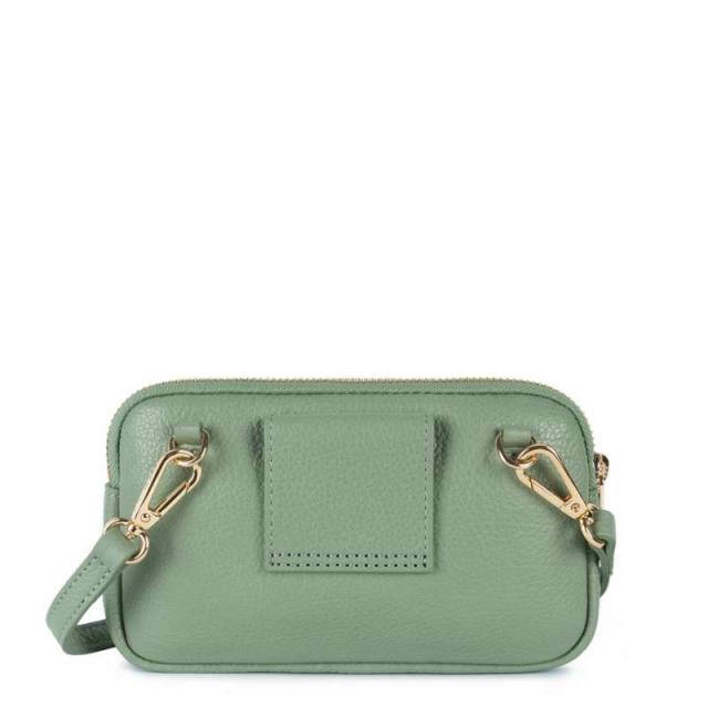 Cette double pochette est confectionnée de cuir de vachette grainé. Elle comporte deux compartiments principaux zippés. Elle se porte à l’épaule ou croisé.Ligne : Dune